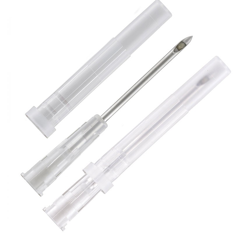 Umístěn ve speciálně tvarované, velmi ostré, jednorázové, sterilní jehle.
